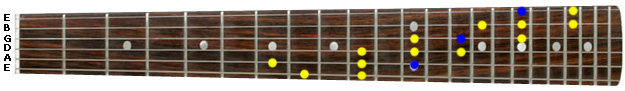 Then, let’s see this pattern taken diagonally downwards across the neck. The way to practice this is exactly the same as mentioned above, starting in any box, and in any key. I cannot enough stress the importance that you DO NOT only practice these exercises in one key!