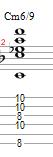 And the Minor 6/9 chord is built with the Root on the A string, the Minor 3rd on the D string, the 6th on the G string, and the 9th on the B string.